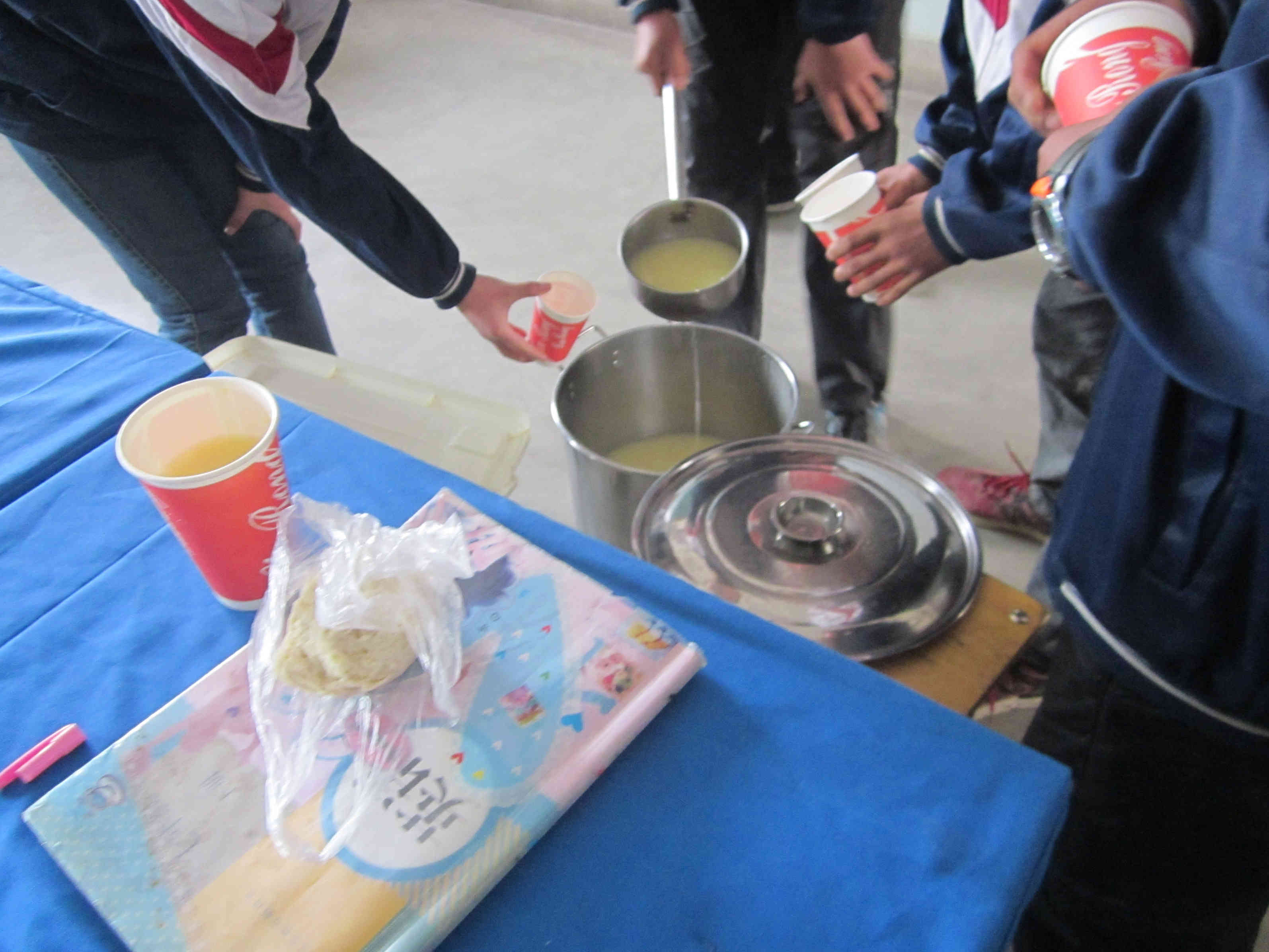 今天是由我负责带领我们组的成员,为大家领取营养早餐,营养丰富的花卷,又大又甜的苹果,还有供给人体能量的八宝粥。