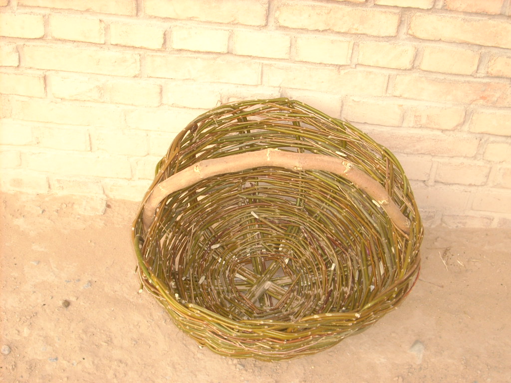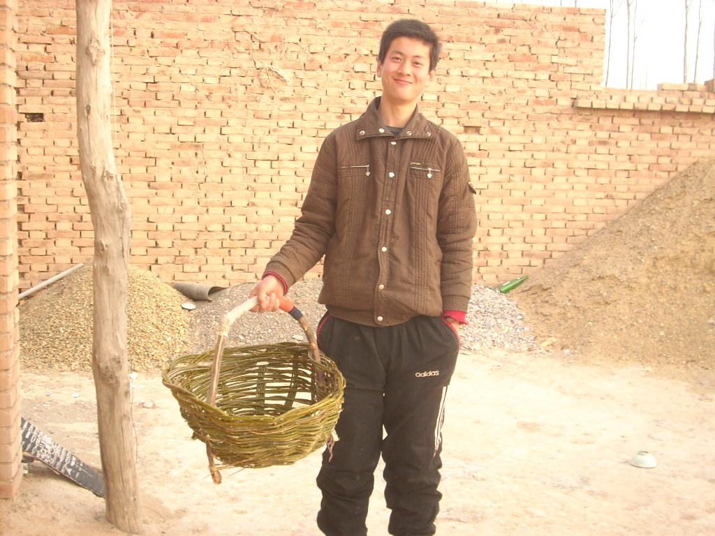 筐编好了,比上一次的好多了,全家看着都笑了,那笑带着对弟弟进步的肯定.一个筐的制做不算什么,但对于刚辍学的弟弟来说,已经很不简单了,我们期待着他更大的进步.