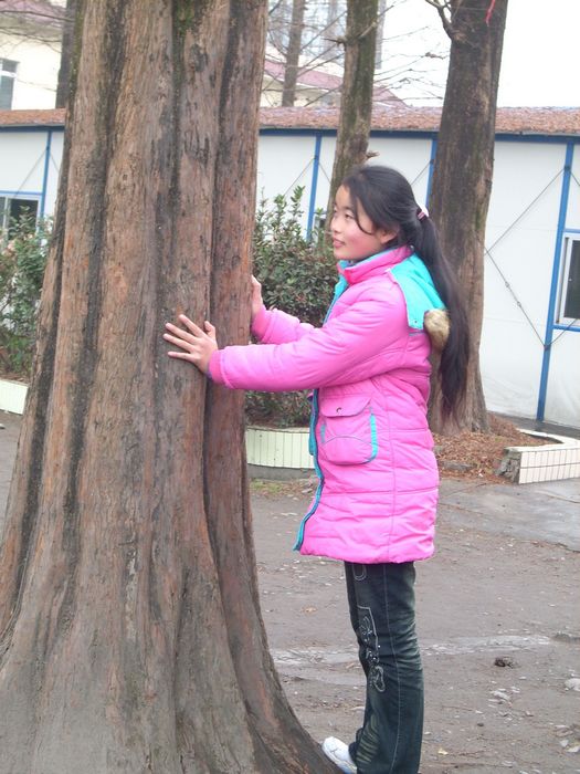 7岁,便走上了学习的成长之路,面对一切新鲜的事物,在懵懂中探寻……记得小学最有趣的便是与几个好朋友放学后在几棵高大、粗壮的铁杉之间穿梭,嬉戏。树的树干显出了许多苍桑。爱玩的我们手拉着手将树围成了一圈。我不知道它的年龄,听说在改革开放以前就一直在这里了,我也不知道它经历了多少不为人知的事,这也许只有它知道吧。