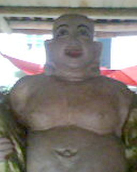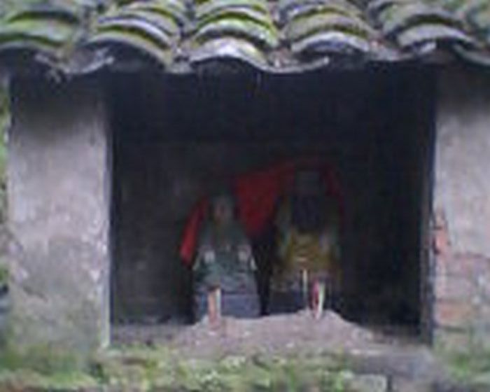 来到庙前,只见两棵高大的杉树分别伫立在庙门两旁,左边是一个40厘米左右的小房子,供奉着土地神,土地神安详地坐在小瓦房中。走上石阶来到门口,只见古色古香的建筑映入眼帘,庙门里有一个高约2米的弥勒佛,笑脸席从在石坐上,露出一双肥胖的脚,这尊佛像是为了挡住视线,让观赏者兴趣更高,进了门只见4大天王手持神器,威风凛凛,将妖怪踩在地下,弥勒佛后还有天兵天将,怒眉直竖。