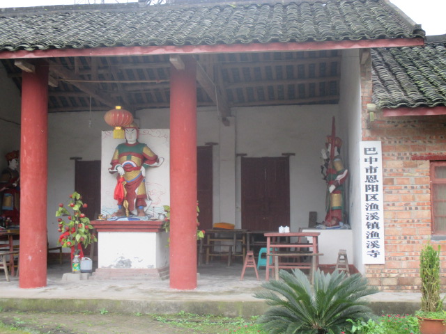 对面又是一处建筑物,这里应该是来人来客休息的地方,桌椅板凳,茶水僧饭,还有一个八面威风的大将军守在门口,让人感到绝对安全的场所。这就是我们渔溪的古老建筑,欢迎八分朋友来渔溪寺参观。