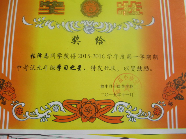 我获得了"学习之星"的称号,我会继续努力、继续加油!