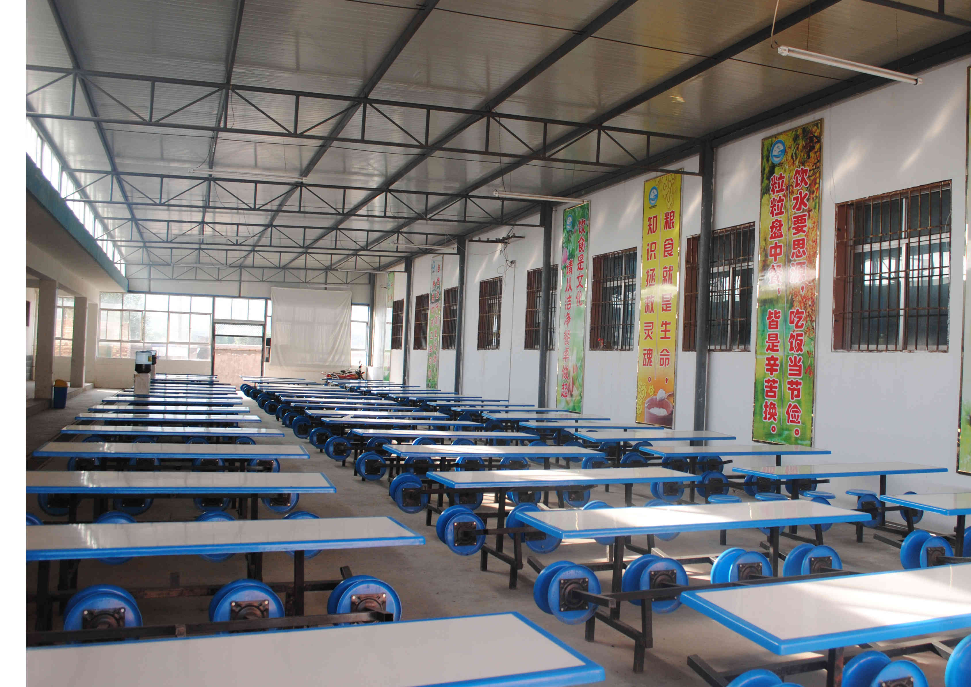 操场一圈有二百多米的跑道内有两对篮球架。一个排球网和两个羽毛球。跑道外有二排兵乓球案子,还有各种健身的体育器材。当然,还有我们的厕所,它位于操场的对面。