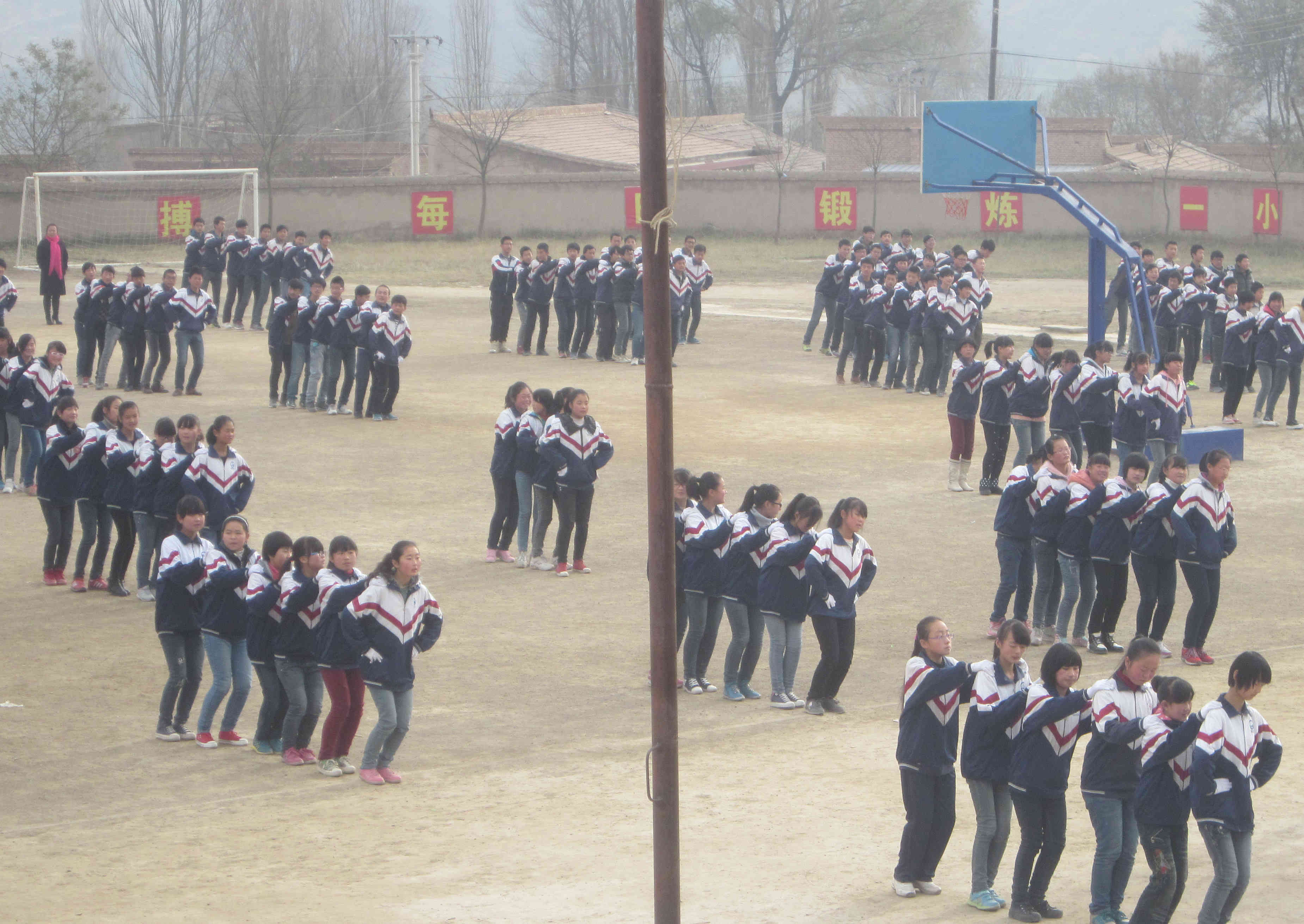 开始跳兔子舞了,首先向左迈一步,双手侧平举,相反方向再做一遍,还原后向前迈一步,再向后退一步,接着再到原点跳三次,然后左腿向外踢,双手上下舞动,两次后,向后方向再做一次。
