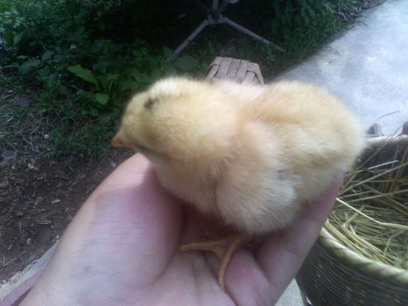 我忍不住伸出了手,轻轻的把一只毛绒绒小鸡放在手心上,内心有说不出的喜悦。它在我手中四处观望着、蹒跚着、叽喳着,好像很不适应这里的环境,眼看它歪扭着马上要掉下去,我立即将它送回到它母亲身边。
