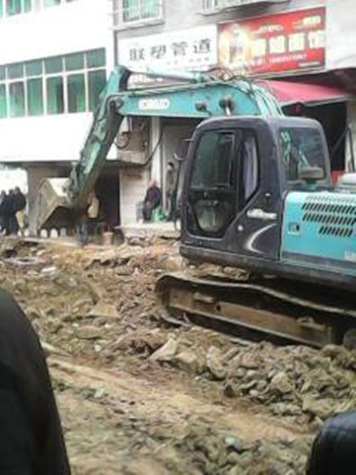 一块块水泥地,就这样放在卡车上,送走了。现在的街道,已被黄土完全的覆盖了,石头凿完了,又开始挖洞。挖土机再次用他那有力的手臂,不停地向泥土中挖呀挖,足足挖了四米深的好壕沟。