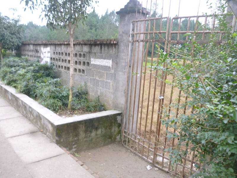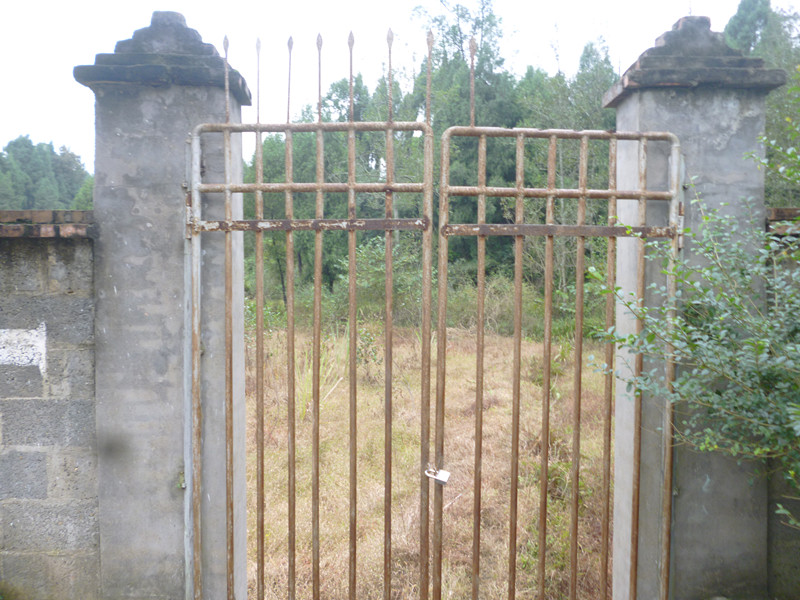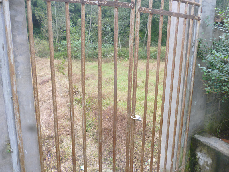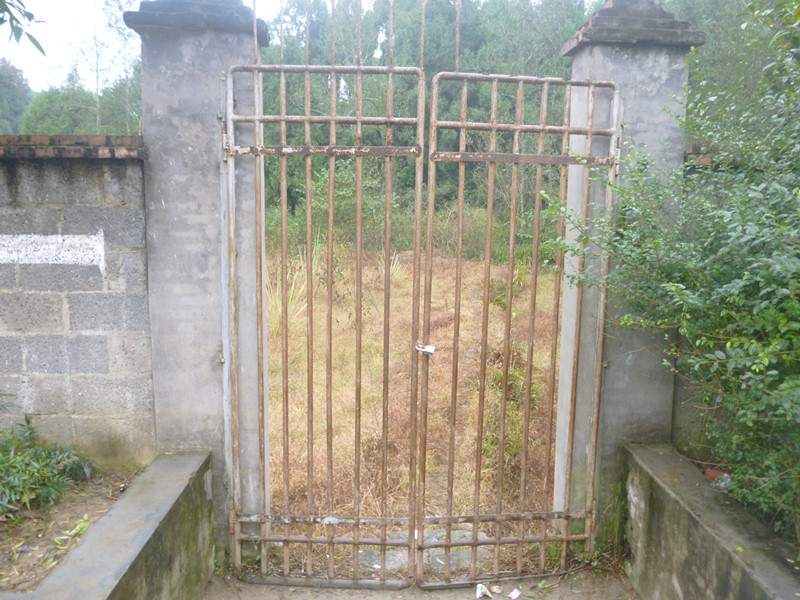 它,很普通,就是几根铁棒,再用一个铁架套上,没有一点点特殊之处,但它最有价值的是,它是一个老东西,身上生了许多锈,没有一点点的光彩。它整体一看,就是一个方形。它外面是几块田地,和这铁门一起看时,无疑是一道风景线。