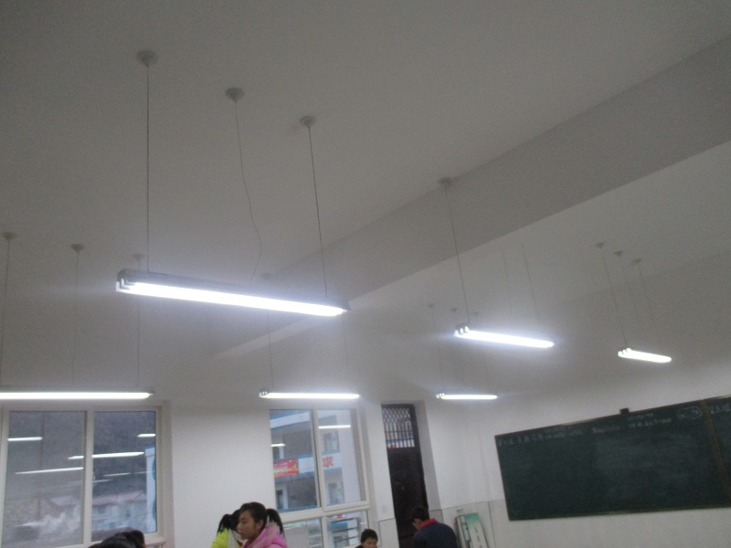 我们的教室天花板上安装了三排吊灯,共计12个灯棒,它让我们的教室在黑夜中变得明亮.肠道周围安装了黑板,这是为了在上课时让各组尽情发挥自己的才能为大家讲解难题.教室里两侧分别安装了两个窗子,他也是光明的使者,让光线透过干净的玻璃进入教室里,使教室变得明亮.接下来就是地板了,地上贴的是白色的瓷砖,被我的同学们打扫得非常干净,看上去晶莹剔透,人站在上面还能清楚的找到你的影子呢!