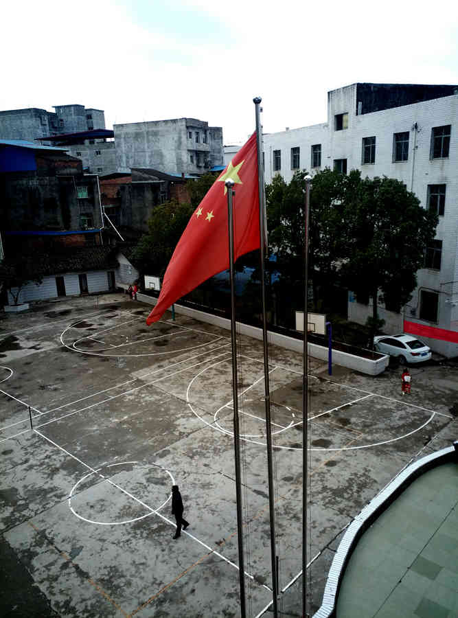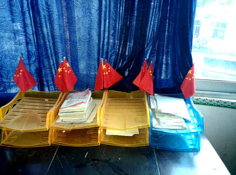 在老师们的办公室里,也插着一面面小小的五星红旗,给整个办公室也增添了庄重的气氛。这些五星红旗,每天伴着老师们在这里备教案、批改作业。老师们每天看着这些五星红旗,时刻感受着身上肩负的责任,默默地努力工作。