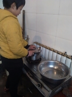 第一步——淘米,我在碗里放好适量的米,用自来水冲洗了好几遍,感觉干净了,便倒入了锅里,然后倒了一碗水,便盖上了锅盖,等待佳音。哇,一定非常好吃吧!