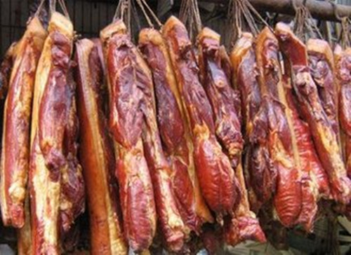 最后,储藏。熏制好的腊肉宜晾挂在阴凉通风处,不可曝晒。仓储的话,可用谷壳层压,防肉虫。这样,一块块金黄的腊肉就产生了,你也可以自己动手试试看。