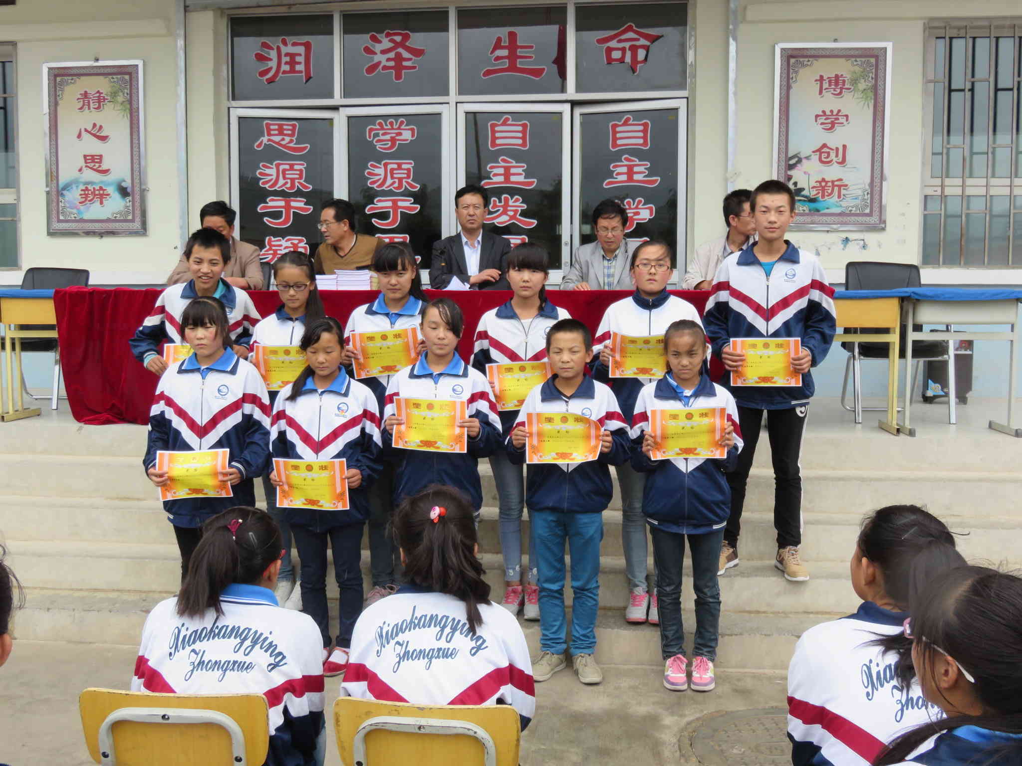 面对今天,我们充满希望,充满力量。面对今天,我们好好学习,天天向上。如果我是展翅的雄鹰,小康营中学就是我们飞翔的天空。如果我是破浪的帆船,老师您就是灯塔;面对今天,我们要努力学习,更要学会做人。学习盲人提灯笼,照亮别人就是照亮自己。