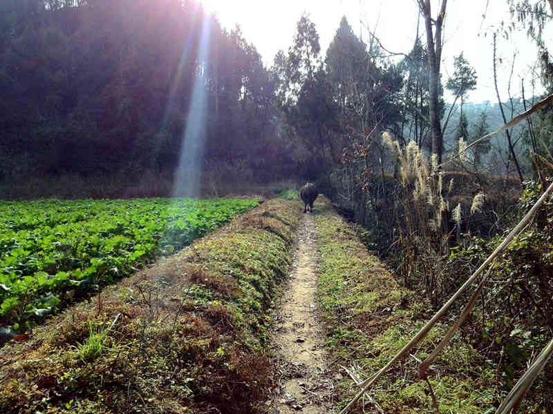 到了下午,村民就会去放牛。放牛的路很窄,所以每次都是人在前,牛在后,这样一直走到目的地。