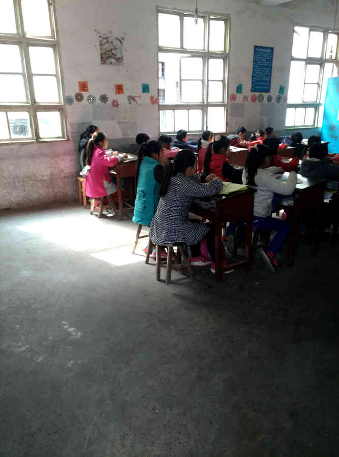 一走进我们的教室,首先你会看到我们的桌子板凳摆放得整整齐齐,地上一层不染,再看向讲台,你会发现我们的黑板干干净净地立在那里,安静地等待着老师们的抚摸。黑板正中央还有我们新的教学设备——电子白板,它可是爱心人士对我们的捐赠,我们格外爱护。