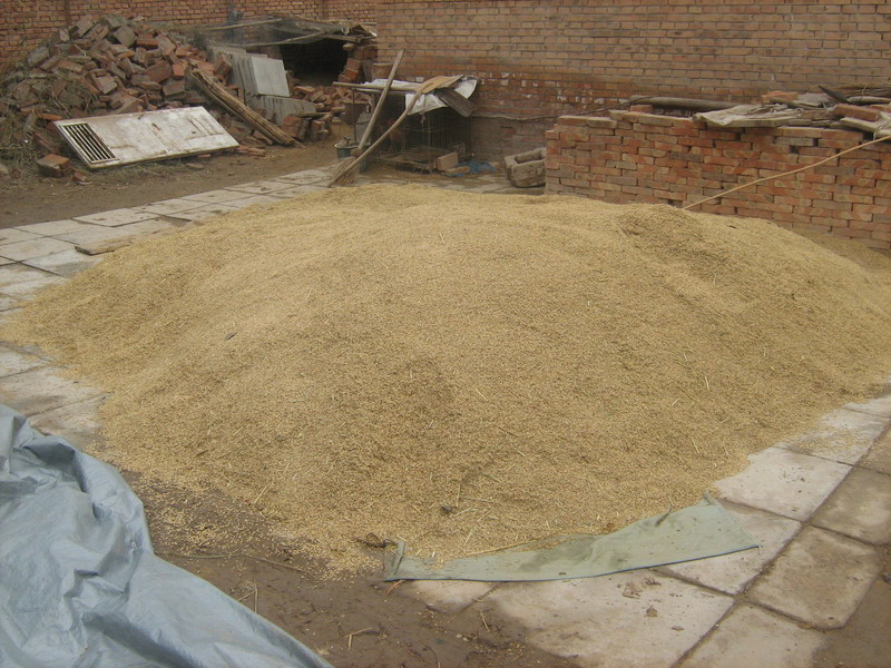 这是农民收割回家后堆在一起的稻谷。宁夏人不喜欢吃米饭,所以,农民把丰收的稻谷拿到市场出售,增加自己家里的经济收入。