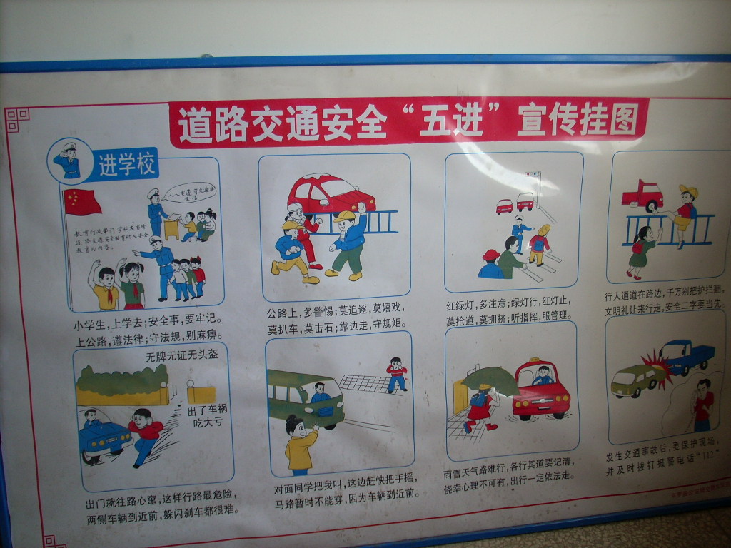 和谐校园,安全第一。为了学生的安全,教育局、交警队、学校的领导付出了很大的精力,交警队的叔叔,为我校送来了许多宣传挂图,挂图向我们介绍了许多道路交通安全知识,告诉我们:"在公路上,如何骑自行车?如何横过公路?注意哪些事项?"