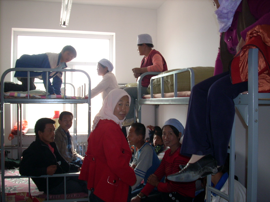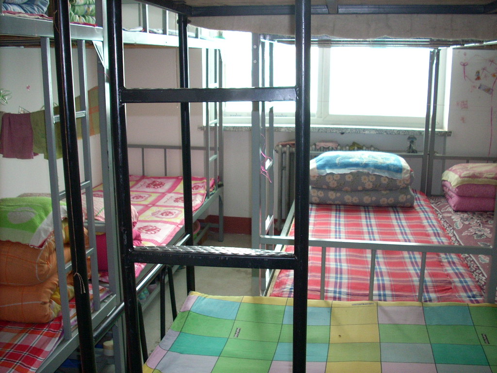 开学了,学生、家长忙了,家长把学生住校需要的被子、褥子、生活用品拿到了学校,宿舍里,一时乱成一片,家长坐到了床上,学生忙着铺床,虽然乱,但是,也体现了家长对自己孩子学习的关心。 家长走了,学生的床铺整齐了,一个宿舍住着十个学生,虽然有些拥挤,但是,由于管理严格,措施得力,所以,每个宿舍布置十分温馨,墙壁上,学生自己布置学习专栏,门口、电灯开关处贴着提示语:如节约用电、请轻关门。