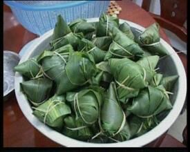 解开扎藤、剥开粽叶,甜粽子里藏着红红的枣肉,咸粽子里躲着白白的粽肉,升腾着蒸汽。两个粽子用盘子放在一起,活赛两颗亮晶晶的红白宝石。糯米在灯光下晶莹透亮,简直棒极了!最爱吃甜食的我,还是深爱枣红般的甜粽子。端午时节,家里都会包出很多粽子, 一大包一大包地送给亲戚朋友。