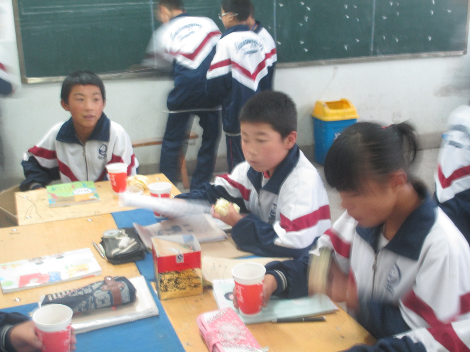 生活委员有秩序的端着早餐,来到每一个桌子前,把营养餐放到同学们的桌子上.牛奶营养丰富,定会为我们的身体增添动力,让我们的学习效率加倍提高;一个个苹果有红又大,定会为我们的身体添加更多营养,让我们的身体更加健康,思想更加活跃.做粥的师傅实在是做的太好了,粥是那么可口香甜,热乎乎的,暖到心田。