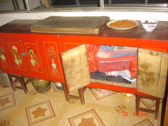 它的外表也是非常艳丽的,所以在当时这里面放的是祖太奶奶心爱的东西或是宝贵的东西,奶奶出嫁时祖太奶奶就把它传给了奶奶,成为了奶奶的心爱之物,也就成为了我们全家人的最爱,至今,在门厢中放的还是比较宝贵的东西,为此,爸爸还特意制定了一个精美的小锁子,钥匙由奶奶保管着,奶奶也就成了我家的总"账房"。她掌管着家里的财政大权。