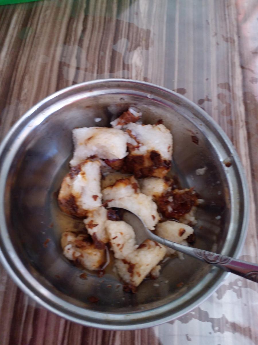 那天早晨总是起得很旱,佩带上五彩的花线、花仓,在门前插上新摘的柳条,便跑去厨房帮忙做年糕,奶奶早已选好了食才在等我了。我先将大枣、葡萄干等一些干果用清水洗干净,而奶奶将淘好的糯米放在锅中进行蒸制,待糯米蒸制完成之后,与大枣、葡萄干等干果放在一起搅拌,同时加上奶奶密制的食用玫瑰酱,让人看着都觉得口水会"飞流直下三千尺。"将搅拌好的糯米平铺在一个大盘子中,上面盖上一层塑料薄膜,用几块砖压住,几个小时后便可以食用了。