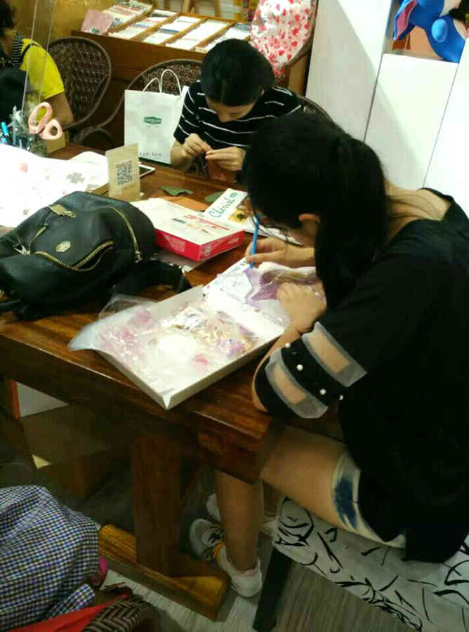 这不,我溜达到了手工区,这里有钻石、手工制作钱包、南瓜等好看的东西。我选了一幅钻石画。而妹妹想要自己制作钱包,不过被幺幺驳回了,因为像她这种手残党来制作这种东西,简直是浪费钱!在生了会儿的闷气之后,耐不住寂寞的她也选了一幅钻石画。