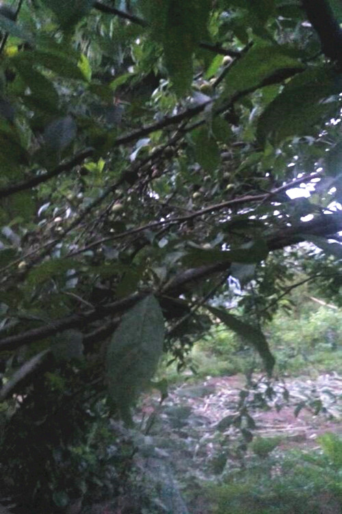 坠在李子树最底下的李子早已被人摘光,只留下最顶端的李子,不过这也难不倒我们!我们用一根带勾的树枝去勾李子,这些李子都熟透了,一勾便掉落了下来,不过却不是掉在我们能捡到的地方。这可怎么办呢?既够不着,也勾不了。我们围在一起商量了个对策!这个方法就是一个人在下面勾住树枝,另一个人爬到树上去摘。