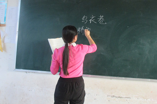 李老师上课时,声音柔柔的很动听。他给我们上课很耐心,不懂的地方反复讲解,直到我们听懂为止,不会写的字她会给我们写在黑板上,叫我们照着写。她从不打骂我们,就算我们不听话了,她也只是狠狠地瞪我们几眼,然后又继续上课。
