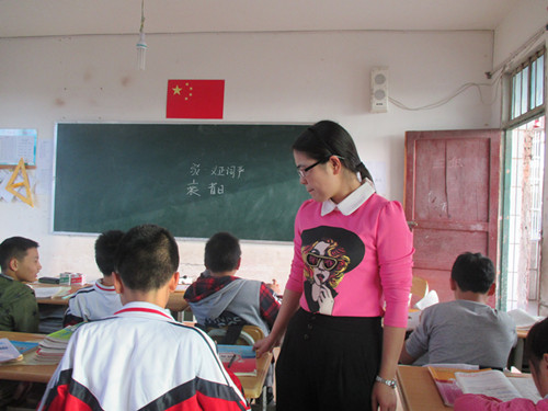 李老师中等身材,衣着朴素。一头乌黑发亮的长发瀑布一般直垂腰间,一张白里透红的瓜子脸上镶嵌着一张樱桃小嘴,她一笑起来嘴角便露出两个漂亮的小酒窝,一双明亮的大眼睛上戴着一副近视眼镜,不但丝毫不影响她的美,反而给人一种儒雅的感觉。