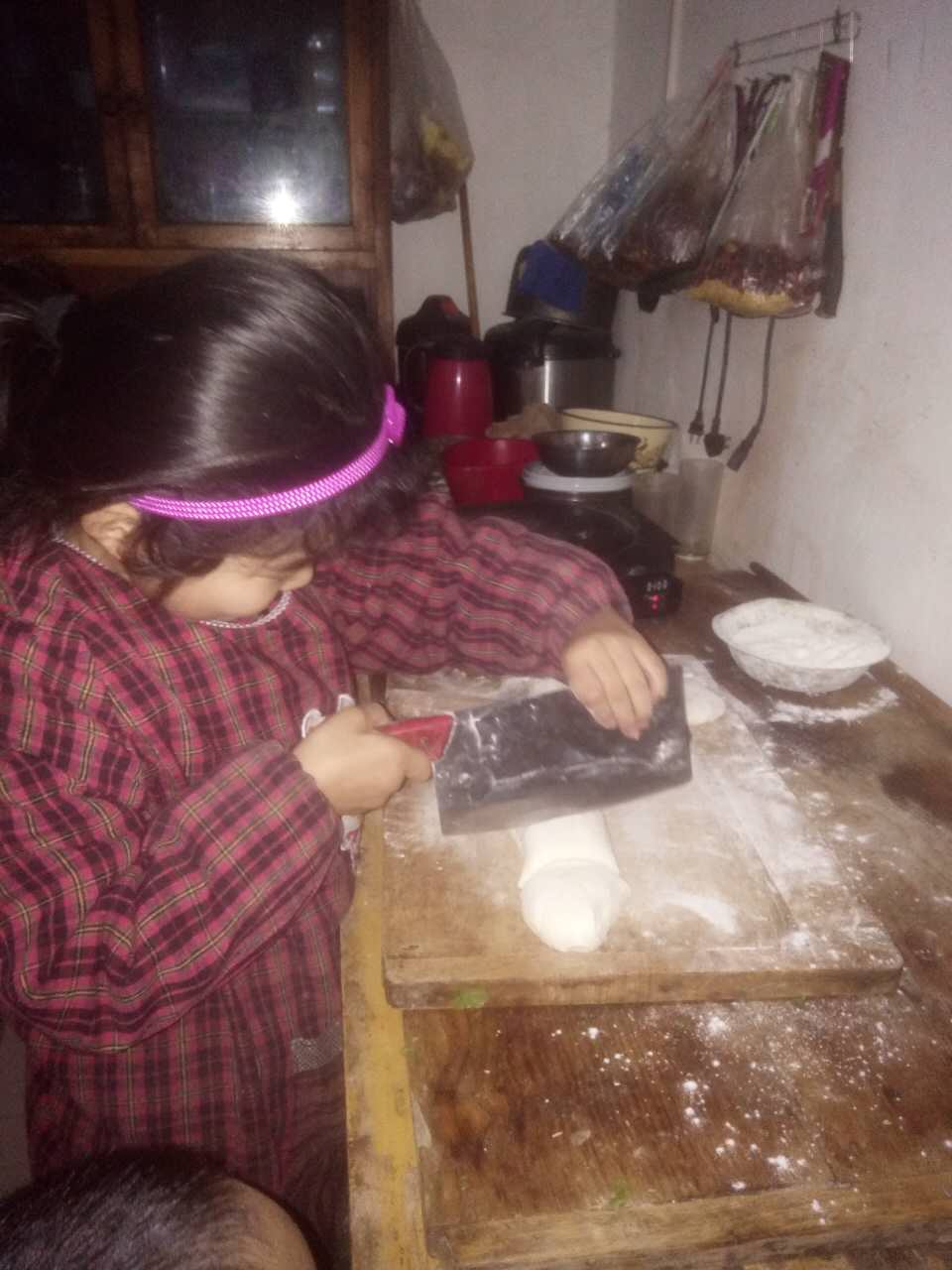 你们吃过羊肉泡饼吗?知道烧饼是怎么做的吗?今天我想和你们分享一下自己做的烧饼。妈妈告诉我做烧饼的面不能太硬也不能过软。于是我琢磨着活好了面。等发酵十分钟便开始了做烧饼之旅。第一步,将发酵好的面揉成条。第二步,将揉好的面条用菜刀切成一块块的,然后将它们用擀面杖擀成薄薄的圆形饼状。第三步,将圆圆的一张张面饼放进电饼铛中,盖上盖子,静静地等待十分钟。哇,揭开盖子,一阵阵饼香扑鼻而来,我迫不及待得将它们拿出来给我的家人们品尝。看着他们津津有味的吃着,我内心都乐开了花。这就是我自己做的烧饼,你会了吗?