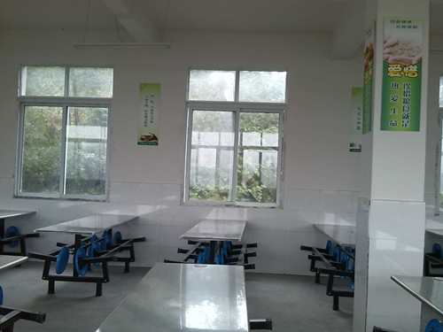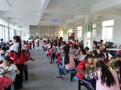 自去年修建新食堂开始,我们便在临时搭建的小食堂里就餐。原以为我们以为今年上半年我们就可以在里面吃饭了,但是由于炊餐用具和餐桌餐椅等设施设备没有采购回来,所以新食堂还不能投入使用。这一期开学,食堂所有设备都已经弄好了,我们终于可以在里边就餐了,那高兴劲儿不必言说。