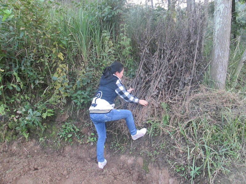 婆婆说,洋姜是刨不尽的,因为它刨不尽,所以能长很多年。开始挖了,我们先把那些已经枯死的杆刨去,然后再按照一列列的顺序把洋姜刨出。