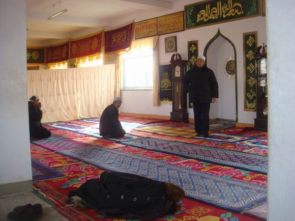 走进大殿宏伟壮观,尤其大殿内的地毯特别的讲究。现在所看到的这幅场景是信仰伊斯兰教的回族人们在做礼拜,他们相信真主,相信圣人,怀着一个虔诚的心在这里完成自己的心愿。