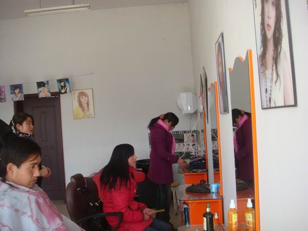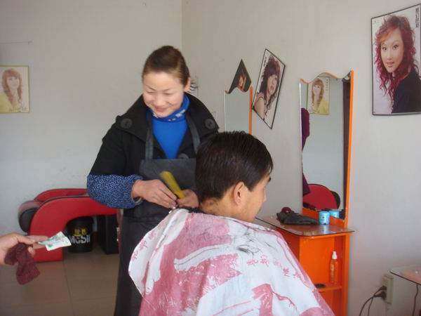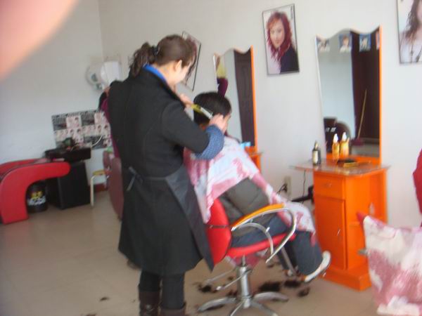 理发是需要耐心,更需要细心,可这位和蔼可亲的老板娘做到了,他对每一位来理发的人,不管是大人还是小孩,都热情、细心,从这张照片中可以看出,她专心致致,一心一意,她的这种做法吸引更多的顾客。