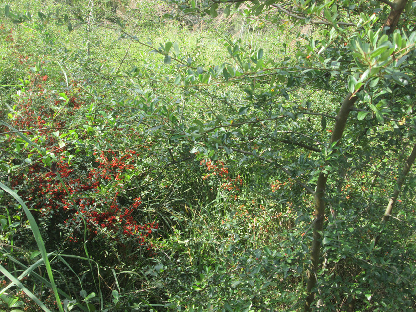 红刺果在我的家乡是一种极为常见的野果,也是我最喜欢的一种"小零食"。一到秋天,如果你看见山上有一片片像"红玛瑙"似的果实,那就是我的最爱—红刺果。