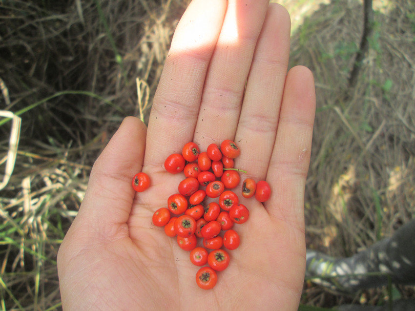 每年秋季树上的果实就成熟了,树上会有一串串的红果儿。红刺果虽然长得很小,但它的颜色非常显眼。而且它的味道和颜色一样令人满足,吃起来酸酸甜甜的,口感有点像再吃山楂一般。吃完后,口里虽然还会有一点点的涩,但是它在我们这还是深受孩子们的喜爱。