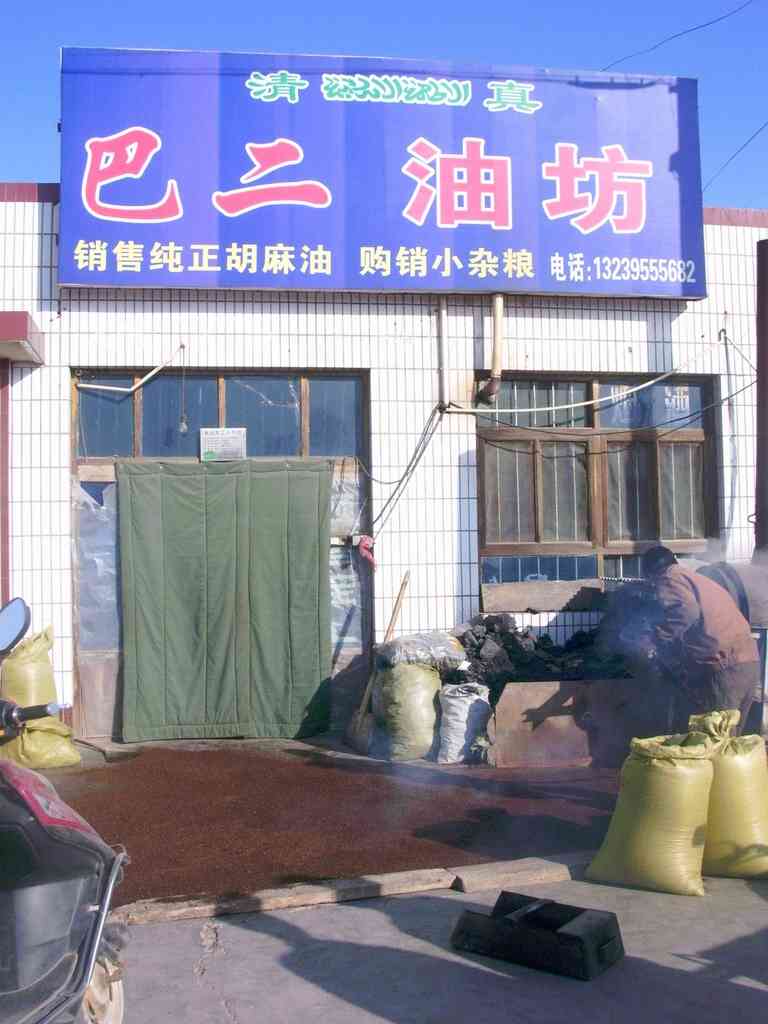 "巴二油坊"这是我们家附近的一个油房,平时家里吃的香油都是从这里买的。这里的胡麻油味道纯正,香醇诱人,深受周边群众的喜欢。