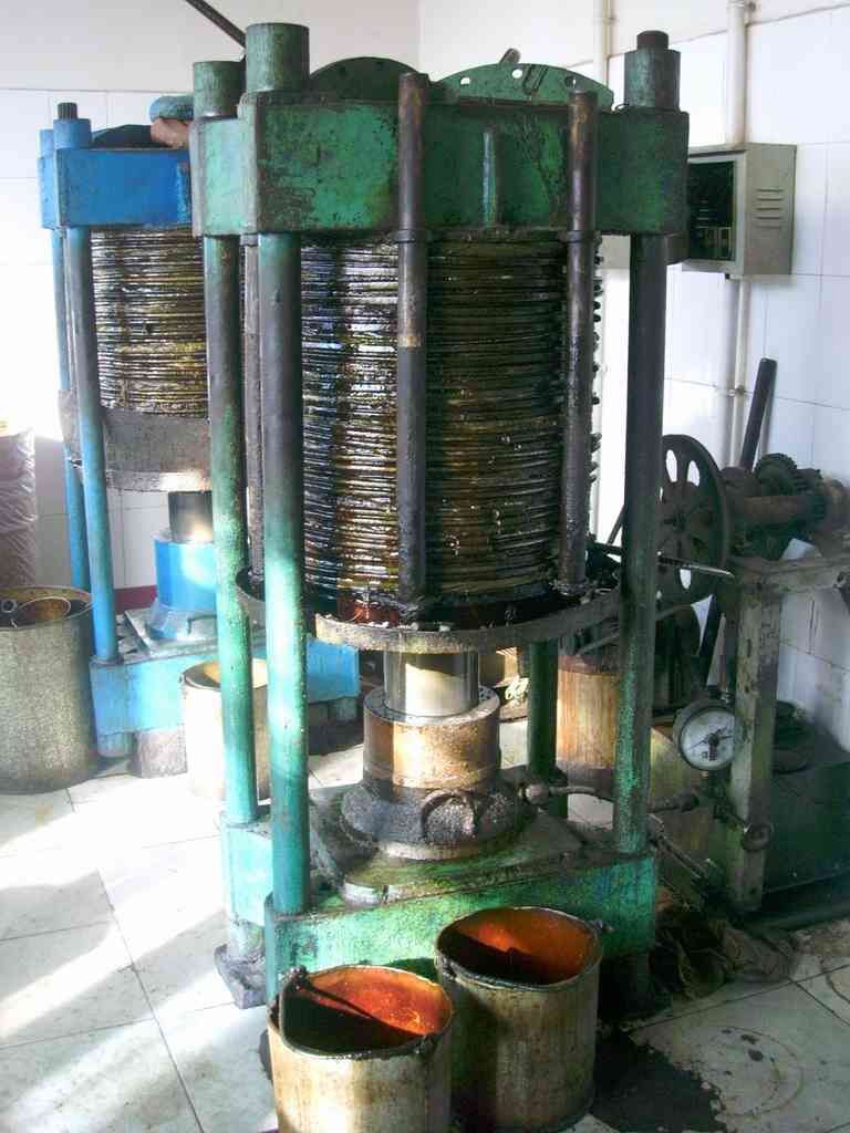 这就是榨油机,我们吃的油就是这种机器榨出来的,它的里面的压力可是非常大的,并能自动定时加压,可以将胡麻籽里面的油脂一滴一滴给榨的干干净净。