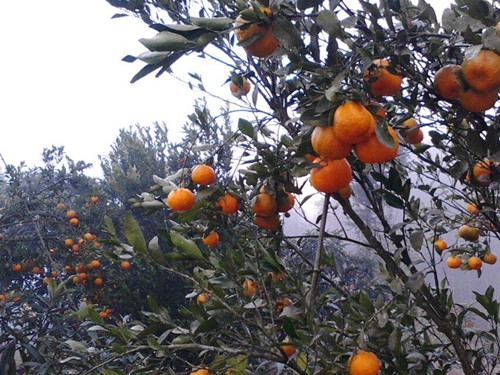 看着这惹人喜爱的橘子,我不仅想起我的老家,那时院子里种着许多橘子树,这个时候也应该结果子了吧!记忆中我从来没有看到过它们开花的,只知道它们它们从头到尾都是绿油油的橘子。有一次,我用手去摘一个还没有成熟的橘子,手用力一扯,手指突然感到一阵剧痛,随后,殷红的血便涌了出来。我突然后悔了,因为这橘子还没有成熟便摘了它,它还这么"年轻"啊,并且又不能吃。从此以后,我便再也不摘青橘子了,一是怕刺,二是我会很内疚。