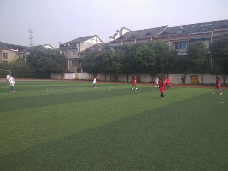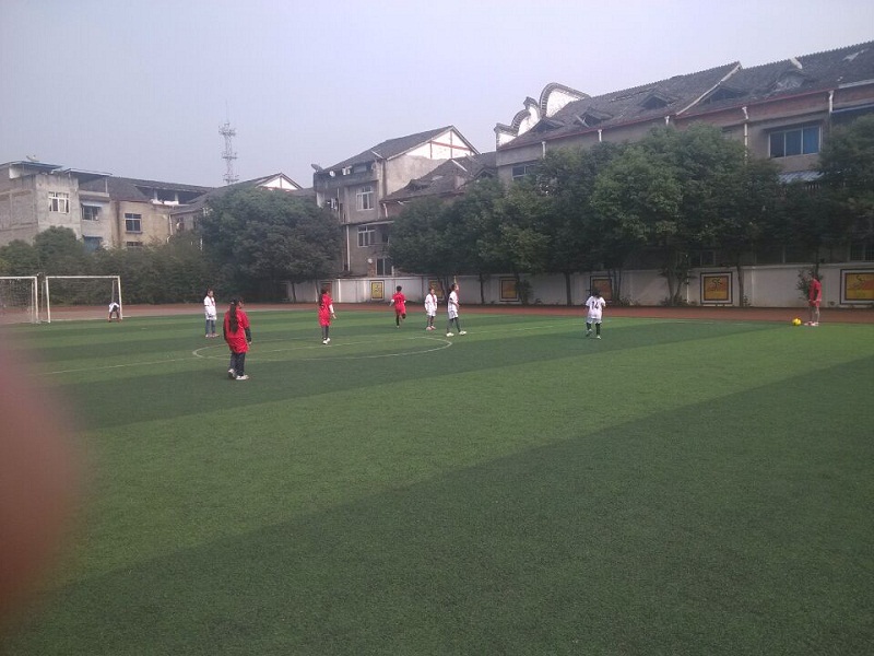 即使在冬天,操场上的孩子们都在体育课教师的带领下学习踢足球的基本动作。孩子们的目光中的认真透设着孩子们对足球的喜爱。那边震天动地的加油声中运动员正在激烈的进行着比赛。团结,拼搏……这些足球的精神在绿草如茵的操场上挥洒着,随风飘扬。低年级的小朋友们也不甘示弱,努力地训练着。