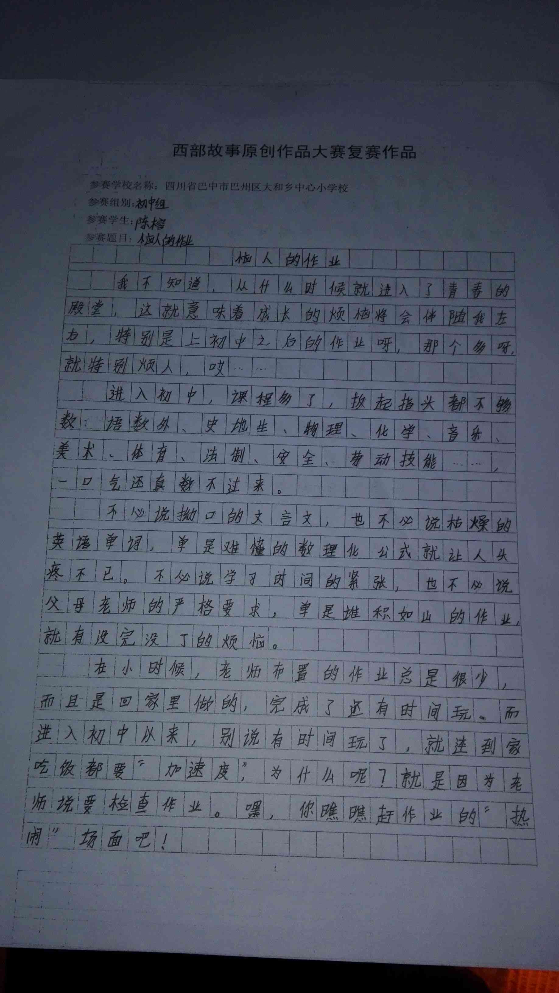我不知道,从什么时候就进入了青春的殿堂,这就意味着成长的烦恼将会伴随我左右,特别是上初中之后的作业呀,那个多呀,就特别恼人,哎……