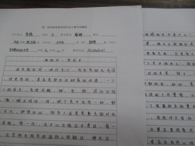 成长就如同一块巧克力,有苦有甜也有涩,但更多的是,是品味那丝丝甜蜜的味道,一个人的成长,会经历酸、甜、苦、辣、咸的过程,像一碗五味汤一样,缺少其中任何一种,都不可以,即便如此,很多人还是笑着去面对任何困难。每一次,在开心与难过中度过,在坚持与放弃的道路上徘徊过,挣扎过,这些经历会成为你终生的财富,你的成长小帆船在以后会遇到更多更大的风浪,所以,你要更加努力才行,需要你做的,就是把握住自己的人生航向,等到风平浪静的时候,属于你的,会是更加广阔无比的天空。经历不同,感受不同,所获得的东西当然也不相同,但是,那一次,才真正让我明白,什么是人间永恒的爱?你最应该珍惜的东西是什么?我的外婆,她从小就特别疼爱我,每次,我回老家,她看我来了,就高兴得像个孩子似的,急忙停下手里的活儿,跑前跑后的给我找好吃的东西,平时的水果、饼干,外婆自己总舍不得吃,想着留给我。那时,爸爸妈妈为了生活所迫,外出打工,就把我送到的外婆家,从此,我便和外婆一起,度过了我最快乐的童年时光。虽然,爸爸妈妈不在我的身边,但我一点也不觉的孤单,因为有外婆陪着我,偶尔,想父母了,外婆就抱着我,给我讲故事,哄我睡觉,等我睡着了,外婆又要去做家务活,来不及休息,看到的只是她忙忙碌碌的身影,夜深人静了,外婆才拖着疲惫的身体,到床前稍稍休息一下,天一亮,又要给我做早饭,还要到地里去干农活……到现在,我才知道,外婆那个时候有多辛苦,不仅要照顾我,还要干那么多的活,可我,却不知道帮外婆分担一些,让她休息一下,哪怕一小会儿,也好,我真的好后悔。不久,我上小学了,那时,爸爸妈妈也回来了,我离开了外婆,开始了我的上学生涯。自从上学以后,每周末除了必要做作业的时间以外,其他时间就只顾着自己玩了,外婆上了年纪,身体也越来越差,爸爸妈妈经常给我说,让我多陪陪外婆,可是,当时,我却不知道自己是怎么了,总找各种理由去推脱,直到,一天早晨,爸爸突然给我打电话,我从学校赶到外婆家时,外婆在床上安静的躺着,周围站满了人,我扑到外婆的床边,喊着外婆,只见外婆睁开了眼,她握住我的手说:"记住,你一定要好好学习……"话还没说完,外婆就……我大声地喊着外婆,可是,却没有任何人回应我,我好伤心,眼泪从我的脸颊滴落地上,那天,我才真正意识到,外婆她离开我了,外婆在最后一刻,最牵挂,最放心不下的还是我,每想到这里,我就好难受,想当初,我就应该多陪陪外婆,陪她度过最后的时刻,可是,现在,一切都晚了。那一段时间,我晚上睡觉经常梦见外婆,梦见外婆给我讲故事,陪我玩……可是,一觉醒来,却什么都没有,这件事一直都是我心中的一道创伤,我永远也忘不了。时间很快,我已经十五岁了,外婆也离开我很长时间了,在这么长的时间里,我经历了,也成长了,我不会忘记外婆离开我时对我说的话,我一定会努力,让外婆看到一个努力的我,那是外婆所希望的,也是我想要成为的,不敢付出多大的努力,我都不会放弃,哪怕,战胜困难只有百分之一的希望,那么,我也会付出百分之九十九就得努力,我想,你努力了,不一定会成功,但你不努力,就一定会失败,这句话常常鼓励着我,还有外婆,也在给我勇气,我会把我的收获与满满的祝福,让月亮帮我带给外婆,外婆,您放心,虽然我现在还不是最好的,但我会努力,让自己变得更好,不让您失望。外婆的离开,让我知道,世界上最永恒的爱就是亲人之间的爱,在这个世界上,愿意为你默默付出,而且,从来都不求回报的,就只有你的亲人,人间,最珍贵的就是亲情,家,才是你永远的避风港,有时间了,多陪陪父母,陪陪你身边的老人,其实,他们所要的并不多,只是希望我们可以多陪陪他们,永远记住,陪伴,才是最好的孝心。一个人的成长,往往就在一瞬间,它们教会了我成长的点滴,教会了我,怎样用实际行动去感恩身边的人,阳光总在风雨后,只有经历风雨,才会看见美丽的彩虹,珍惜亲情,感恩身边的人,努力了,才会有不遗憾的人生!