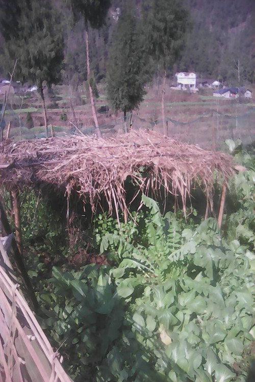 虽然还没有让它们彻底地保温,但也已经能够保暖了,虽然四方透风,但只要顶部不透风就可以了,因为电视上不是说人最怕冷的是头部吗?所以我认为植物大概也是这样的。