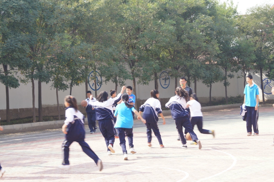"叮铃铃",下课声一响,一帮学生就拿着篮球奔向了操场,还不时有人加入。刚开始你可能觉得他们有点贪玩,而且每节课间他们几乎都会来到操场,其实是我们学校的学生在为不久后的篮球赛做准备呢!我们班参加比赛的男生女生在课间、在体育课上都为了给班级增添荣誉而努力训练着。