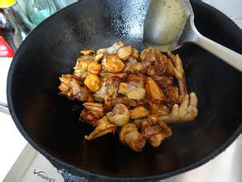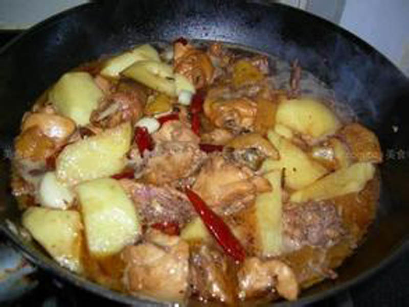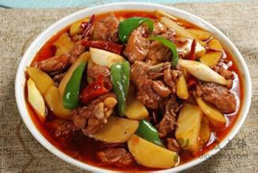 在我的印象中,妈妈的厨艺那是顶呱呱的好,尤其是她炒的大盘鸡,那更是叫绝。这几天因为我不太爱吃饭,妈妈决定在今天给我炒一只大盘鸡,给我补充一下营养。而今天正赶上我们放假,所以亲眼目睹了妈妈制作大盘鸡的方法。今天特来给大家分享一下。首先,先杀了一只鸡,然后将鸡用水洗几遍后处理干净,接下来把鸡切成块并把它们放在一个盘子里。接着便是炒鸡的时刻了,这时候需要先把一些清油放进锅中,等到清油过了,便把切好的鸡放进锅中开始炒。等到大约五分钟之后,把锅中的鸡块翻一下,然后再等十五分钟之后,将一些洋芋块放进有鸡肉的锅里。放的洋芋块不能太厚,也不能太大,否则将炒不熟。如果是喜欢吃粉条的人,在炒鸡肉时放一些粉条在合适不过了,但是放粉条的时间不能太早,如果太早的话炒完后的粉条会嫩的夹不起来,那样就会使原本美味的大盘鸡变得看上去就没有胃口。大盘鸡中可以放的东西多的不计其数,至于放什么那就要根据本人的爱好了。但是不管放什么,最重要的一点就是一定要掌握住火候。好了,听完我妈妈炒大盘鸡的方法,热爱美食的朋友可以尝试着做一下哦!