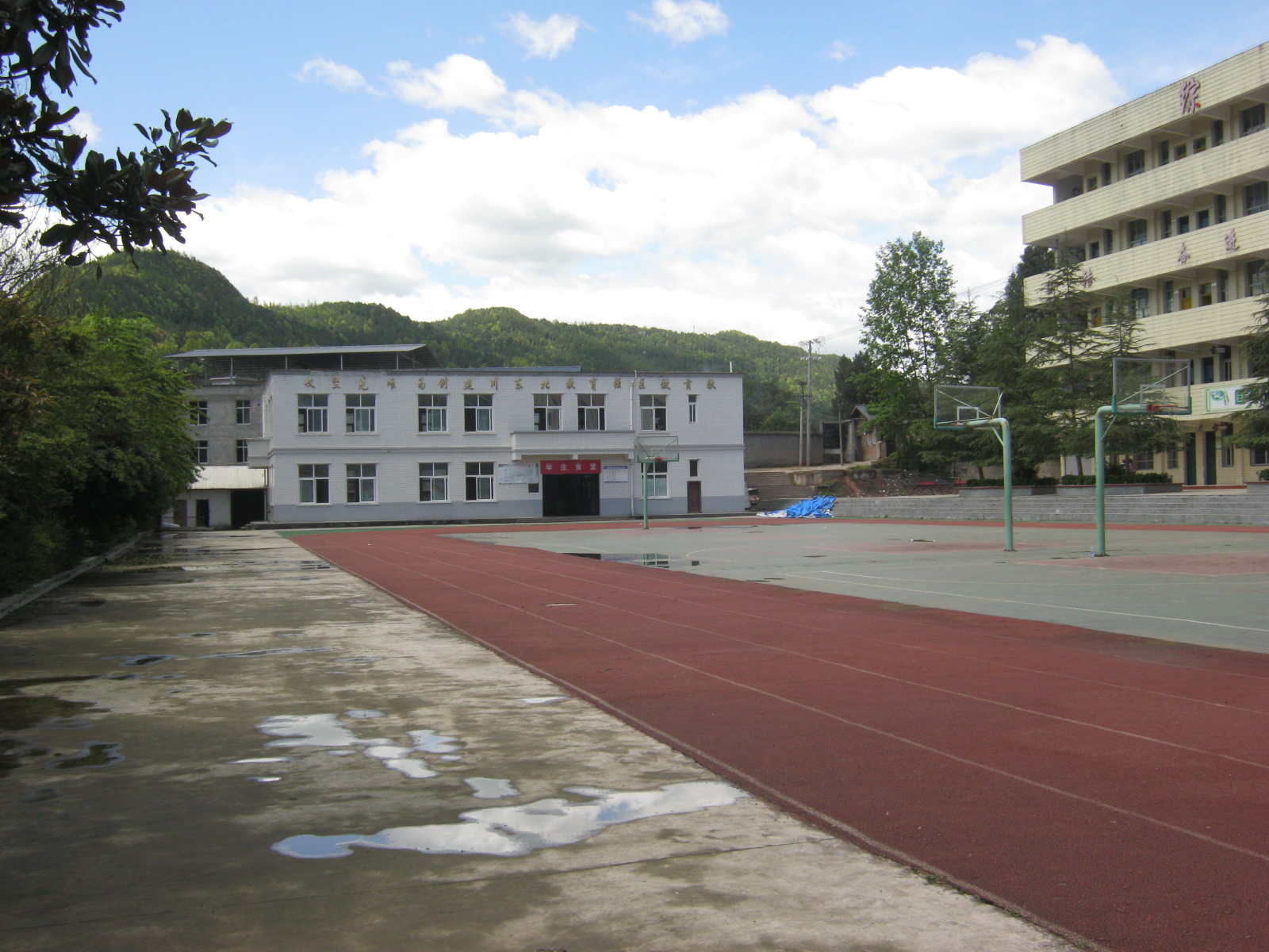 走进充满欢声笑语、书声朗朗的校园,让人心旷神怡、宠辱偕忘,有一种把酒临风的感觉。走上台阶,放眼望去,一个被塑料跑道包围的红旗飘飘,几个篮球场是"球贩子"的"家"。