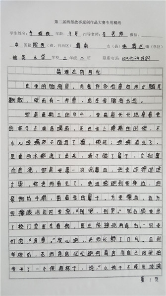 回到学校后,老师急急忙忙跑到商店用自己的钱给我买了一个保温杯子,说:"小孩子不能用玻璃杯,记着,下次走路一定要小心哦 !"此刻,我又流泪了,那是激动的泪。