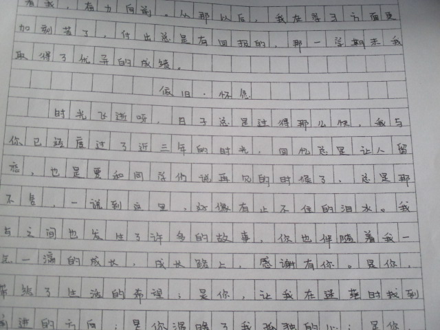 渐渐对你也熟悉了许多,在老师和同学的帮助下,我学到了许多。我满心欣喜,我可以在上面发表自己的文章了,可以让更多的人了解到我的故事。慢慢发现,我开始喜欢上了你,喜欢上了写作,向更多人展示家乡的风土人情。我的写作水平也在不断提高了,语文成绩也在提高。你带给我的幸运还不止这些呢,到了八年级时,一天,指导老师告诉我,有一位梅子叔叔要资助你,每学期会给你汇600元爱心款。这就是一缕暖阳吧,温暖了我孤独的心灵,也激励着我奋力向前,从那以后,我在学习方面更加刻苦努力了,付出总是有回报的,那一学期末我取得了优异的成绩。依旧.怀念