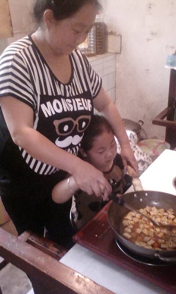 记得那是一个周末,又到做午饭的时间了,我便自告奋勇地对妈妈说:"妈妈,我要学做烧豆腐,因为我最爱吃您做的烧豆腐,有时您忙了,我可以自己做饭呀!"妈妈说:"女儿终于长大了!好吧,我教你。"妈妈终于答应教我做饭了,我激动地跳了起来,赶紧学着妈妈平时做饭的样子系好围裙。首先我按照妈妈教我的方法把米饭蒸到电饭锅里,接着开始做红烧豆腐。我先把豆腐洗干净切成小方块,然后打开电磁灶把炒锅放上去,当炒锅烧热后,我就倒了些油,等油开始冒热气时,妈妈让我放一袋烧豆腐的调料,我怕油溅到身上,不敢往锅里放,妈妈就让我关上火,等油温稍微低点时再放进去,等调料炒一阵后,妈妈就让我把豆腐放进锅里,但是我还是不敢,妈妈就让我把豆腐从锅边放进去,果然从边上倒进去以后,油就没有溅到我身上。只听"嗤啦"一声,豆腐和油好像发生了矛盾似的吵了起来——油溅了出来,就连锅里的豆腐也炸开了,妈妈怕油溅到我手上,就让我拿铲子把豆腐翻个身,我接过铲子去翻,可是怎么也翻不过来!妈妈手把手地教我翻,一边翻豆腐,一边说:"你翻的时候把铲子横过来一点就能铲到了。"等豆腐两面都烧得黄黄,能闻到香气时,妈妈让我把调好的汁倒进去,又放了点盐,还撒了一点葱花,我一会儿"乒乒乓兵"拿这个瓶,一会儿"叮叮当当"拿那个瓶,妈妈看我手忙脚乱的样子,禁不住哈哈大笑。不一会儿香喷喷的红烧豆腐做好啦。