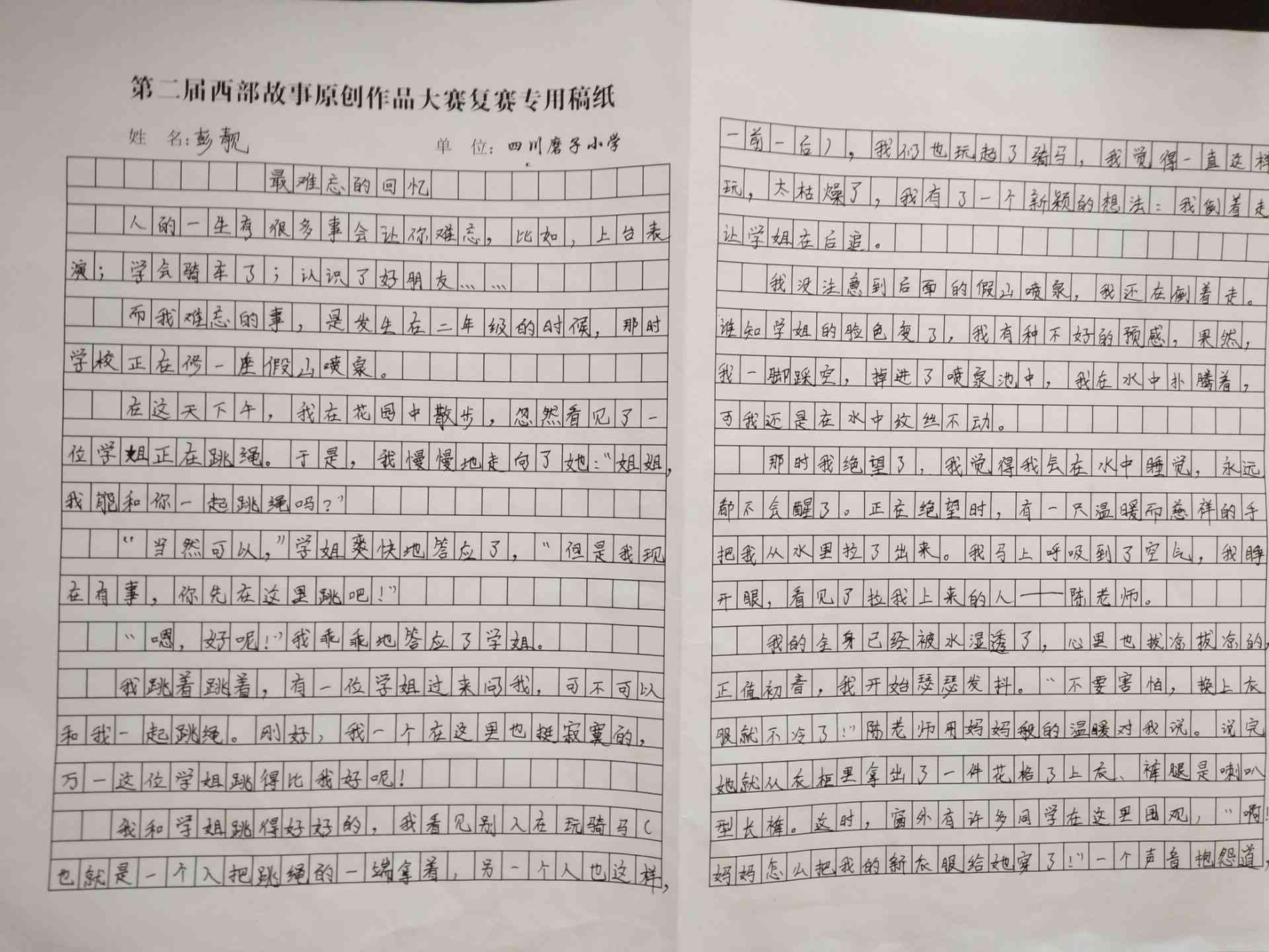 我快绝望了,我觉得我会在水中睡着,永远都不会醒了。正在这时,有一只温暖而慈祥的手,把我从水里拉了出来。我马上呼吸到了空气,我睁开眼,看见了拉我上来的人——陈老师。